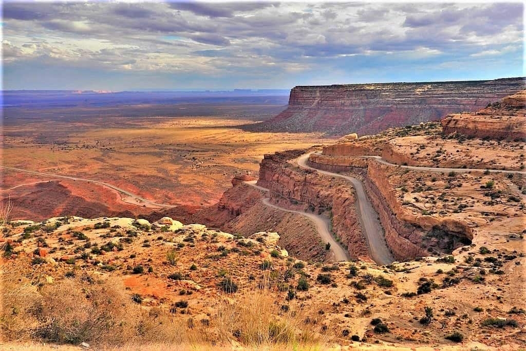 Sama droga Moki Dugway, pełna ostrych serpentyn i zakrętów, jest wykuta w pionowych ścianach klifu Cedar Mesa. Choć ma zaledwie około 5 kilometrów długości, przejazd nią potrafi zająć nawet godzinę — nie tylko ze względu na ostrość zakrętów, ale też na potrzebę skupienia i ostrożności na tak wymagającym szlaku.