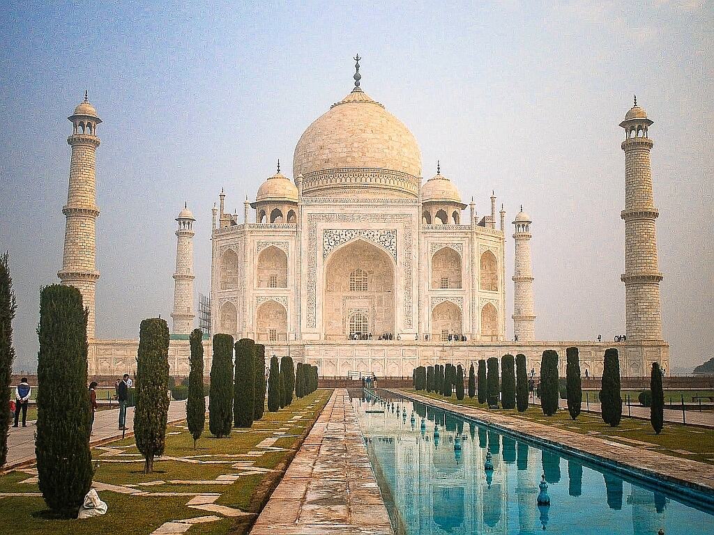 Mauzoleum Tadż Mahal wraz ze złotą iglicą mierzy 74 metry wysokości. Wszystko tu jest poczwórne, żeby nie zmącić idealnej symetrii. 300 metrowa aleja obsadzona cyprysami wiedzie do głównego budynku. Wszystko otaczaj 17 hektarów ogrodu.
